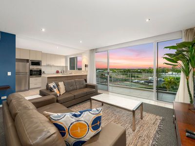 This amazing luxury apartment has expansive views across Hope Island and Sanctuary Cove.