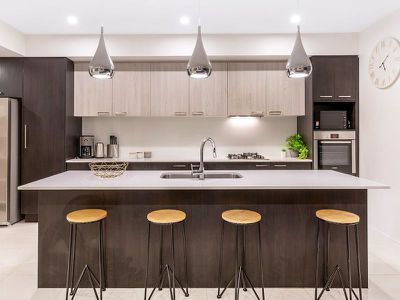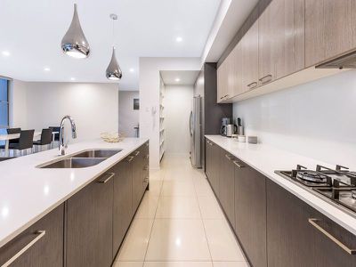 6¦1 Gourmet chefs kitchen complete with gas cooking, quality European appliances and white stone work bench & island bench. Hidden walk-in pantry and fridge space.