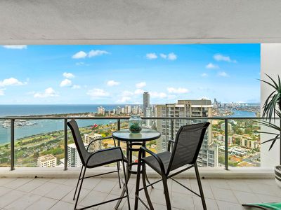 Located on the 37th floor of this building with the most magnificent and expansive views east across the Broadwater looking directly at The Versace Resort, Marina Mirage, the Southport Yacht Club and East across the Pacific Ocean.