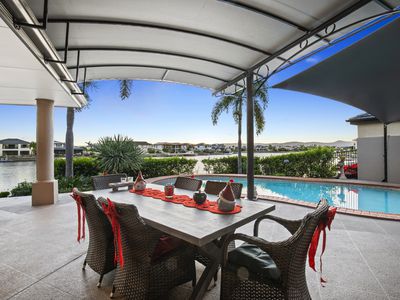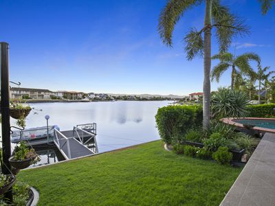 This property is on wide water with views across the lake to Tamborine Mountain in the distance. Amazing at night time with the lights of the other houses across the water and views up to Mount Tamborine.