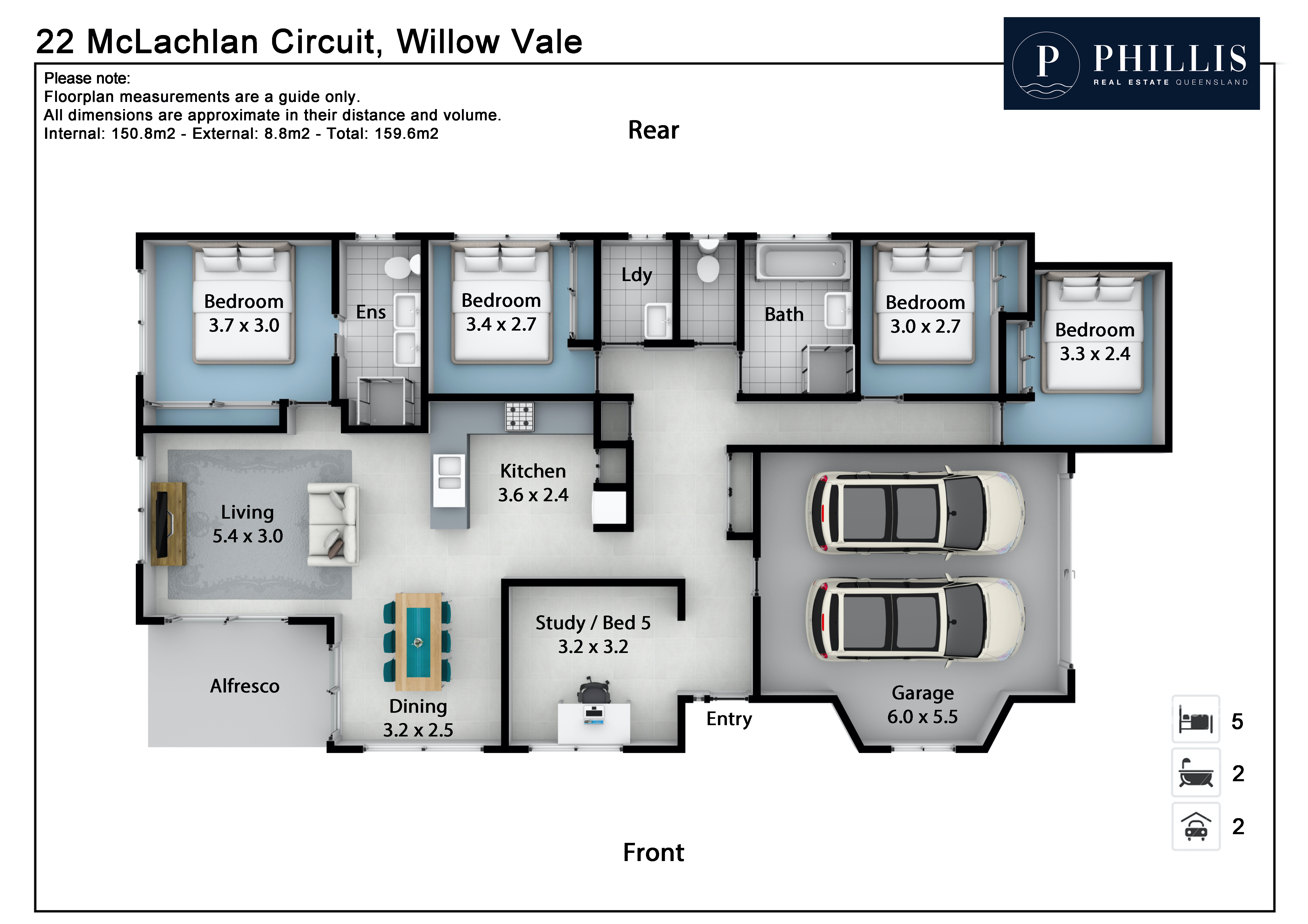 - 4 Bedrooms + Study (or potential 5th bedroom)